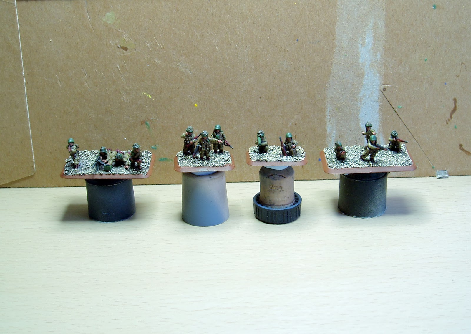 I decided to paint these models already stuck onto their bases and based. I hoped it would be easier than sticking them individually onto little cocktail sticks!